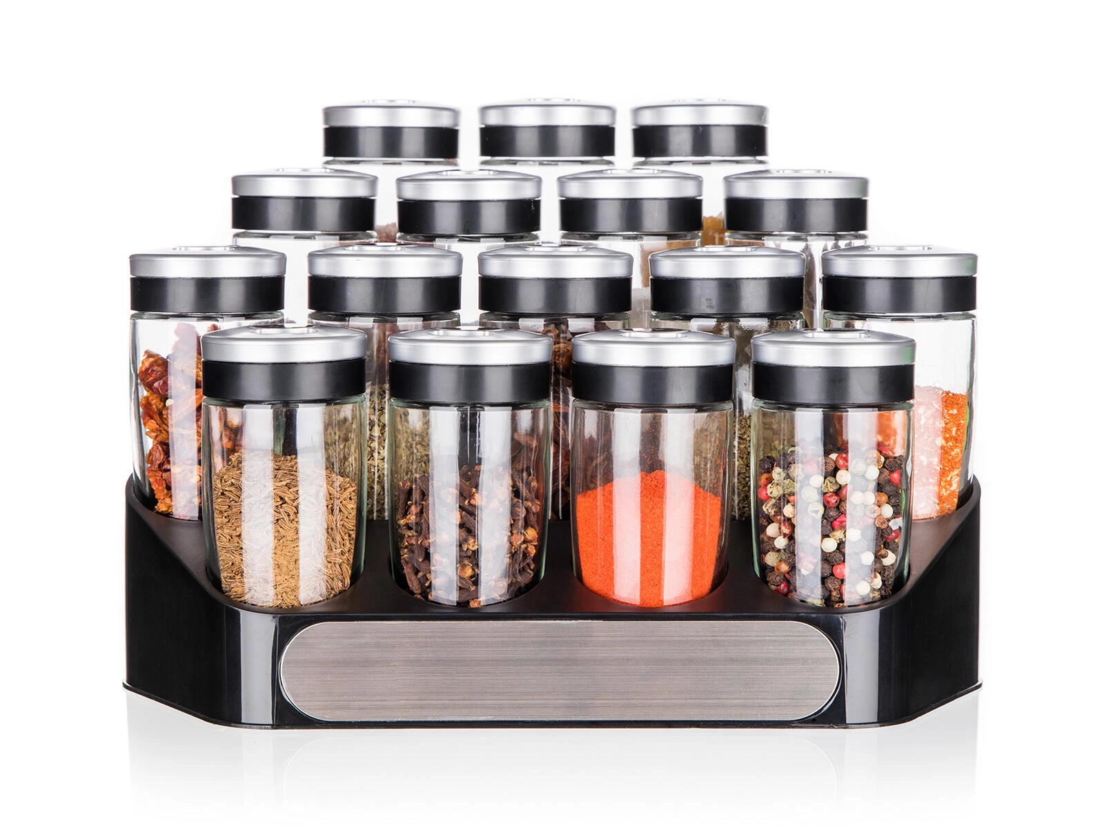 Le support stable en ABS garde les 16 pots d’épices bien visibles et à portée de main – idéal sur le plan de travail ou dans le garde-manger.