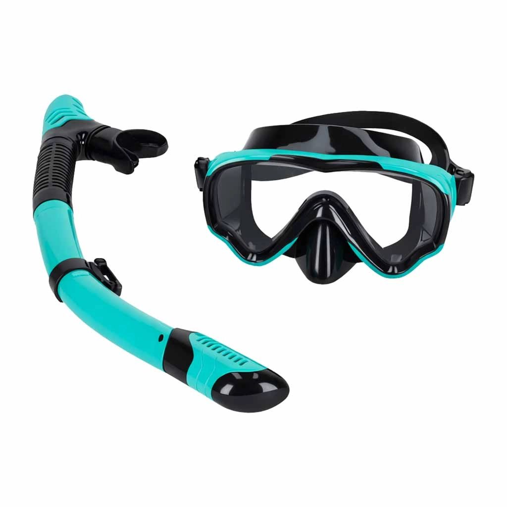 Découvrez le monde sous-marin avec un set de snorkeling confortable en bleu‑noir. Le masque panoramique offre un champ de vision exceptionnellement large grâce à son verre trempé, tandis que le tuba ergonomique avec système dry-top et protection anti-éclaboussures à fermeture permet une respiration naturelle en surface. Des matériaux de qualité tels que le silicone souple et le polycarbonate garantissent étanchéité, résistance et confort même lors d’une utilisation prolongée.
