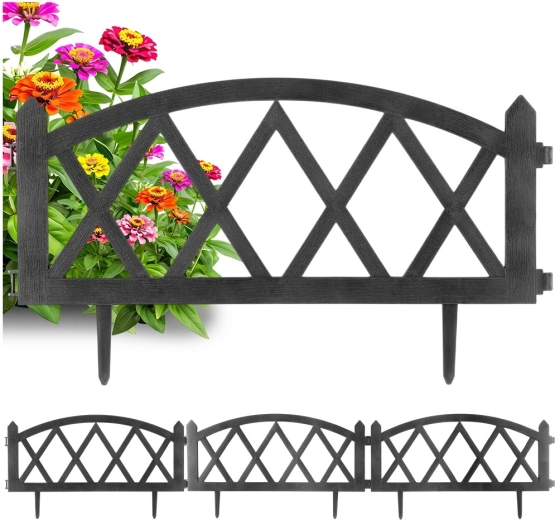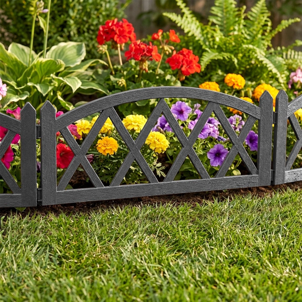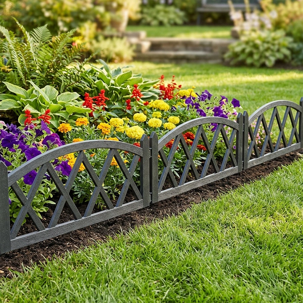 Créez une séparation claire et esthétique entre la pelouse et les parterres fleuris. Le lot de 4 bordures grises se pose facilement grâce aux deux piquets intégrés sur chaque panneau et assure une fixation stable dans le sol. Alignés en ligne droite, vous obtenez une longueur totale d’environ 228 cm, idéale pour border massifs et sentiers.