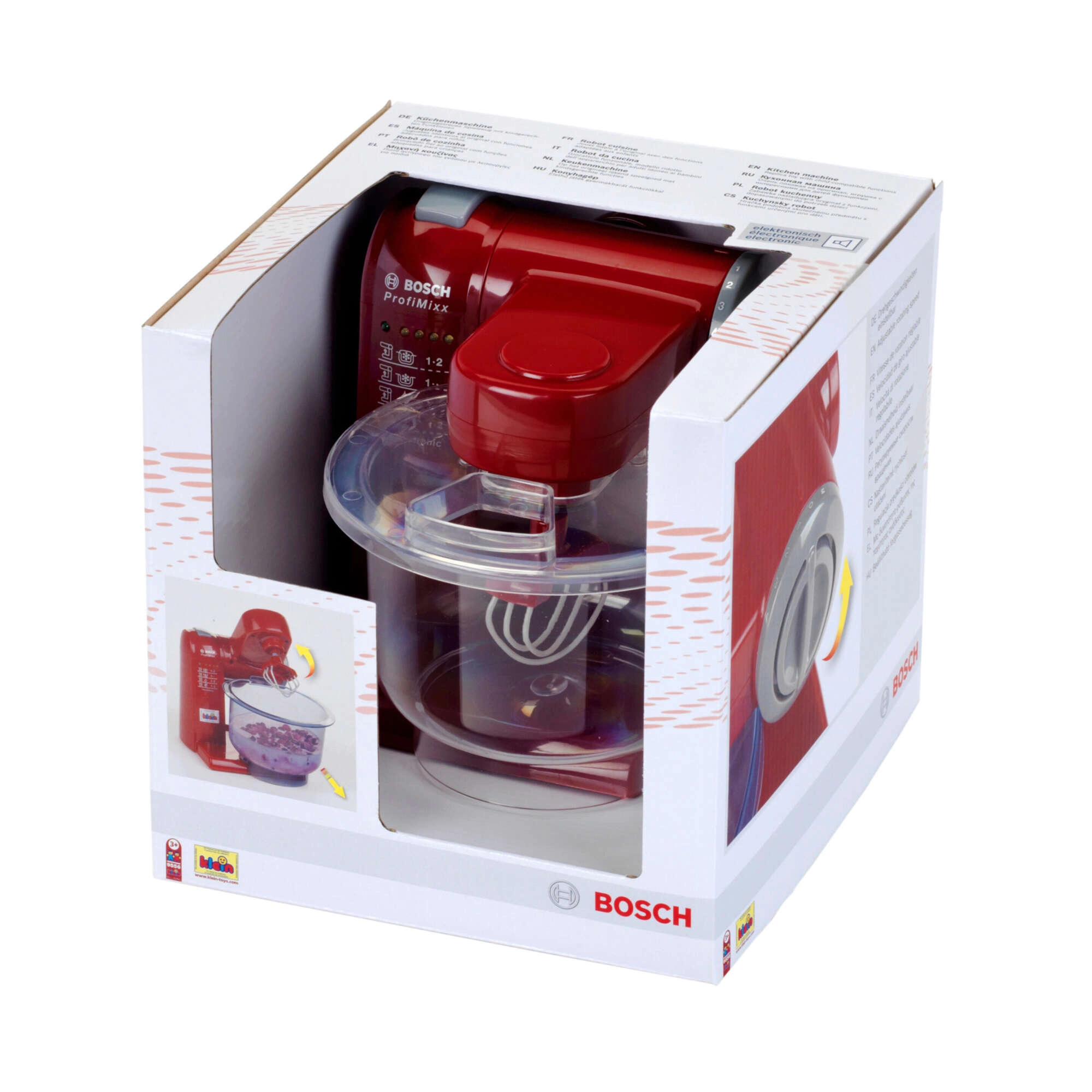 Ce robot de cuisine pour enfants bordeaux et stylé reproduit fidèlement l’appareil original BOSCH. Grâce à ses effets de lumière et de son, il ressemble à un véritable appareil et motive les enfants à imiter les adultes en cuisine. Sa construction légère et ses matériaux sûrs garantissent une utilisation confortable et sans souci.