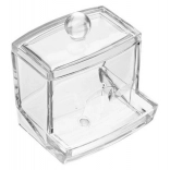 La fente ouverte à l’avant assure un accès rapide et pratique aux bâtonnets sans avoir à retirer le couvercle. Le couvercle amovible avec bouton de préhension protège le contenu et souligne l’élégance du produit, qui s’harmonise aisément avec tout style de salle de bain.