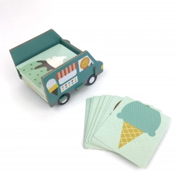 Gourmands, à vous de jouer ! Un jeu de cartes malin et amusant où vous assemblez des cornets de glace, collectionnez des boules et ajoutez des vermicelles. Contient 52 cartes illustrées et 4 camions de glace, idéal pour 2 à 4 joueurs, dure environ 10 minutes et est fabriqué à partir de matériaux recyclés avec des encres végétales. Un excellent choix pour les enfants de 4 à 8 ans et conforme à toutes les normes de sécurité.
