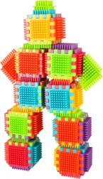 Les blocs sont fabriqués en plastique de haute qualité, ils sont très légers, flexibles et en même temps super résistants. Ils aident à apprendre de nouvelles formes et couleurs et développent les compétences manuelles. Les blocs sont conçus pour stimuler les sens en développement de l’enfant : la vue grâce à des couleurs vives et le toucher grâce à leur forme originale et à leur mode d’assemblage. Des blocs qui offrent d’incroyables possibilités de jeu créatif ! En plus des combinaisons traditionnelles comme avec des blocs ordinaires, ces blocs peuvent également être connectés sur toute la surface d’un côté, ce qui offre une possibilité de création supplémentaire. Ils peuvent être utilisés pour construire des bâtiments, des robots et d’autres structures !