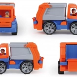 Jouet coloré de camion poubelle de 29 cm fabriqué en plastique de haute qualité flexible, conforme aux normes européennes. Inclut une figurine et une cabine de conducteur basculante.
