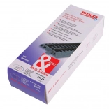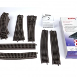 Ensemble de rails avec reproduction détaillée de traverses en bois sur une base de gravier, couleurs authentiques, courbe parallèle et deux aiguillages. Idéal pour la construction d'un ovale alimenté indépendamment.