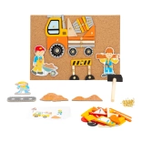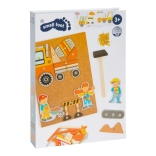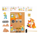 Découvrez un jeu de clouage ludique avec planche en liège, pièces en bois et petit marteau, qui développe l’imagination et les compétences des enfants. Les enfants composent leur propre chantier ou une scène de transport à partir des pièces et la fixent avec des punaises. Des modèles illustrés pour l’inspiration sont inclus, le tout rangé dans une boîte pratique. Favorise la créativité, la motricité fine et la concentration.