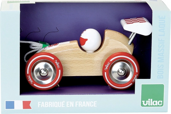 Voiture de course en bois à tirer avec aile rouge VILAC