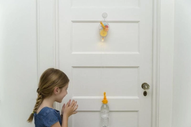 Suspendez un poids et observez comment sa chute convertit l’énergie gravitationnelle en lumière. Une excellente démonstration de physique appliquée que les enfants comprennent immédiatement.