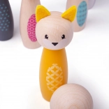 Faites plaisir aux enfants avec un set de quilles stylé et ses animaux adorables – chouette, blaireau, cerf, chat, ours et lapin. Les figurines colorées en bois certifié FSC sont lisses, agréables au toucher et résistantes à un usage quotidien. Le set convient pour jouer à la maison sur un tapis ou sur un sol lisse.