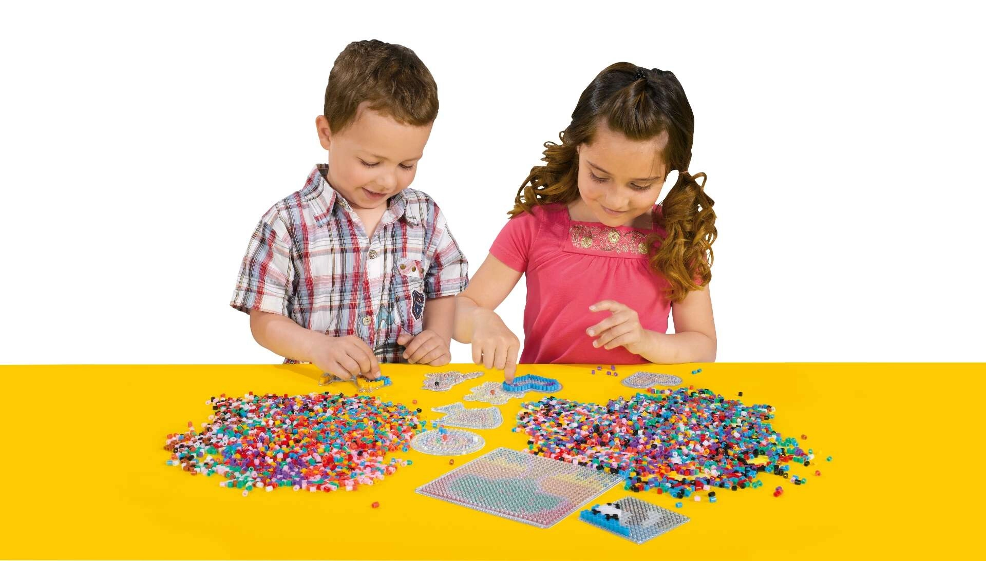 La grande quantité de perles colorées laisse libre cours aux petits et grands projets – des formes simples aux décorations pixel-art détaillées.