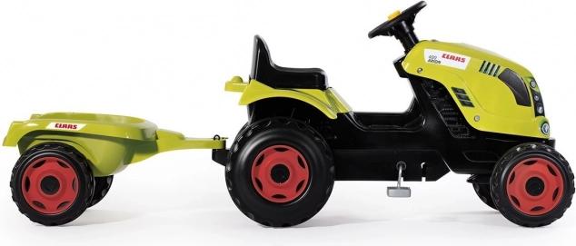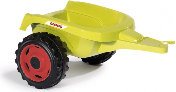 Tracteur à pédales CLAAS avec remorque verte