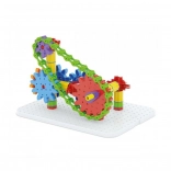 Le jeu est fabriqué en plastique durable et destiné aux enfants à partir de 5 ans. Il contient des composants tels qu'une plaque de base blanche, des engrenages de différentes tailles, une chaîne et beaucoup plus, permettant aux enfants d'explorer un nouveau monde de mouvements mécaniques.