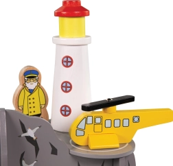 Ajoutez à votre univers ferroviaire des aventures côtières avec un phare, une maisonnette et une aire d’atterrissage pour hélicoptère. Les enfants peuvent explorer le tunnel caché dans un rocher « marin », mener des opérations de sauvetage et développer leur imagination ainsi que leurs talents de narration. Le set est idéal comme extension créative du circuit et convient parfaitement aux thèmes tels que recherche, secours et vie en bord de mer.