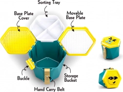 - Seau pratique – le couvercle sert de plaque de construction et l’intérieur comporte un compartiment pour trier les pièces.