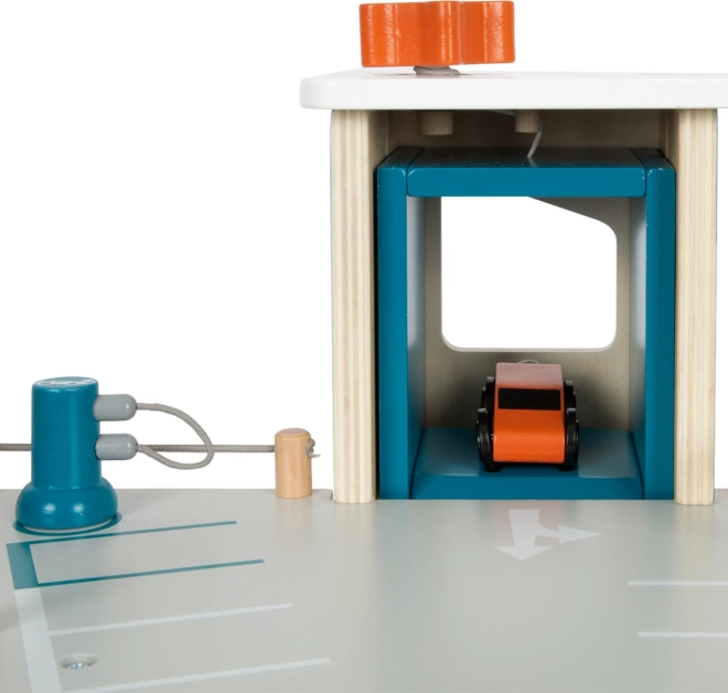 Découvrez un parking en bois polyvalent à trois étages, avec un ascenseur fonctionnel et des rampes fluides pour des heures de jeu créatif. Inclus: 2 petites voitures, station-service et borne de recharge, rampe élévatrice et station de lavage avec brosses réalistes. Des barrières mécaniques à chaque niveau et un garde-corps en caoutchouc pour une conduite sûre dynamisent le jeu. La combinaison robuste de contreplaqué, bois massif et plastique non nocif garantit une longue durée de vie.