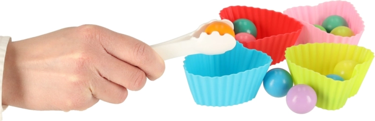 - Activités variées : pêche magnétique, capture de chenilles, tri dans des coupelles en silicone, transport à la pince, déplacement sur le plateau de jeu.