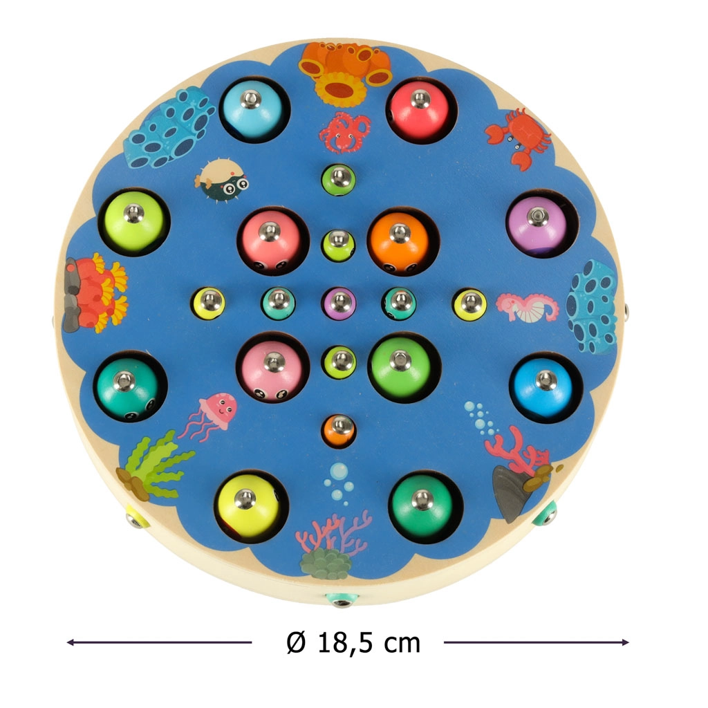Le set Montessori multifonction offre des heures de jeu créatif et d’apprentissage. Sur une base ronde en bois au motif océan, les enfants attrapent des poissons magnétiques avec des cannes, extraient des chenilles, transportent des billes à l’aide d’une pince ou de bâtonnets et s’exercent aux couleurs, au tri et à la patience. Grâce aux nombreux accessoires, plusieurs enfants peuvent jouer en même temps.