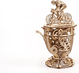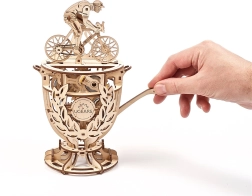 Découvrez la magie de la mécanique avec le modèle en bois UGEARS Cycliste. Ce trophée élégant avec cycliste s’anime d’une pression sur le levier et présente un mécanisme d’engrenages mobile. Grâce à une conception ingénieuse, vous pouvez régler le volant d’inertie avec des pièces et observer une rotation fluide. L’assemblage se fait sans colle, les pièces sont découpées avec précision dans un contreplaqué de qualité et, une fois monté, le modèle est entièrement fonctionnel et décoratif.
