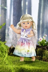 Les fées et les licornes vont ensemble comme le lait et les biscuits. La petite robe de fée pour la poupée BABY born est confectionnée dans un magnifique tissu arc‑en‑ciel. La jupe est imprimée de licornes magiques dansant dans le ciel étoilé. Le haut de la robe est décoré à l’avant d’un visage de licorne avec de petites oreilles appliquées et une corne colorée. Une vraie fée doit bien sûr avoir des ailes. Des ailes transparentes ornées de petites fleurs scintillantes sont cousues au dos de la robe et, dès que BABY born passe le bras dans la petite ouverture en haut des ailes, elles s’ouvrent. Tenue originale pour les poupées BABY born. Pour un jeu imaginatif, varié et durable. BABY born Costume féerique Licorne pour poupées de 43 cm. Cintre inclus.