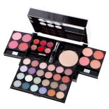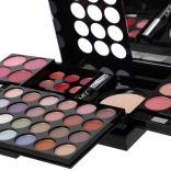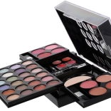 24× fards à paupières, 8× blush, 6× gloss lèvres crème, 1× poudre, 1× mascara, 1× set de 4 applicateurs/pinceaux, miroir intégré