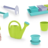 Le grand ensemble de jardin Gardenico Kids est idéal pour les petits jardiniers. Il contient tout le nécessaire pour cultiver des herbes et d'autres plantes, y compris des outils pour enfants, un ensemble de mini-bac, des pots de fleurs et des soucoupes.