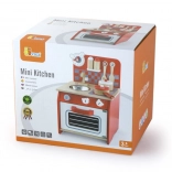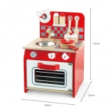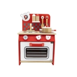 Cuisine en bois élégante pour enfants offrant des possibilités de jeu réalistes avec four, cuisinière, évier et horloge à aiguilles mobiles. Parfait pour les petits chefs !