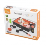 L'ensemble comprend divers morceaux de sushi en bois, des baguettes, un récipient pour sauce soja et un plateau de service, reproduisant parfaitement l'expérience authentique de la présentation de sushi. C'est un excellent moyen de faire découvrir aux enfants différents types de nourriture et de leur enseigner les compétences de base de la cuisine japonaise.