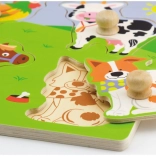 Découvrez un premier puzzle qui apprend aux enfants, de façon ludique, à reconnaître les formes et les animaux de la ferme. La planche en bois de qualité avec illustrations colorées et pièces robustes munies de poignées est idéale pour les petites mains et le jeu quotidien.