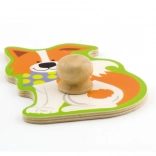 Chaque pièce possède un gros bouton en bois qui facilite la prise en main et l’insertion précise – idéal pour développer la motricité fine et la confiance de l’enfant.
