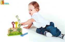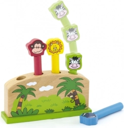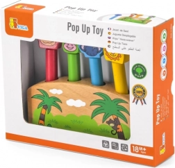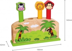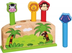 Un jeu en bois amusant pour les tout-petits où, en appuyant sur les chevilles colorées avec des animaux, les figurines sautent joyeusement. Favorise la motricité fine, la coordination œil-main et le jeu curieux dès 18 mois.