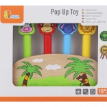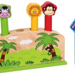 Ce jeu pop-up en bois avec animaux est un premier jouet moteur idéal. Les enfants insèrent les chevilles-animaux dans les trous et, après avoir pressé le ressort, les figurines jaillissent de façon ludique. La base en bois robuste au motif jungle et les animaux amicaux encouragent le jeu répété et développent la patience ainsi que la concentration.