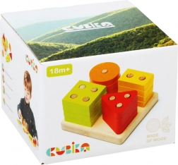 Ingénieux puzzle en bois CUBIKA Trions les formes proposant 17 pièces pour s’exercer à enficher sur des chevilles, aux couleurs et aux formes. Favorise le développement de la motricité fine et de la pensée logique, fabriqué en érable et hêtre de qualité et utilisant des peintures à l’eau sûres et inodores. Fabrication européenne, conforme à la norme EN 71 et certifié TÜV. Convient à partir de 18 mois.