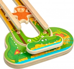 Découvrez un jouet astucieux et captivant au motif jungle rafraîchissant, qui occupera les enfants pendant de longues minutes. Une fois accroché au mur, il économise de la place dans la chambre d’enfant et crée une zone de jeu attrayante. Deux singes en bois descendent une double piste, font des saltos et tournent, rendant chaque descente amusante et différente.