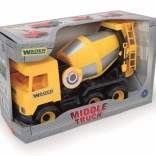 Le Jouet bétonnière jaune Middle Truck est fabriqué en plastique résistant et conçu pour résister aux projets de construction les plus fous de vos enfants. Il est équipé d'un tambour rotatif et d'un bac amovible pour le béton, permettant une expérience de jeu réaliste. La taille du jouet est de 38 cm, ce qui assure une manipulation facile pour les petites mains.