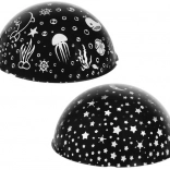 Il suffit de changer le couvercle pour transformer la chambre en ciel étoilé ou en monde sous-marin. Une grande polyvalence qui amuse et apaise les enfants.
