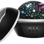 La projection rotative et le choix entre quatre couleurs (vert, bleu, blanc, rouge) créent des effets lumineux impressionnants au plafond et sur les murs.