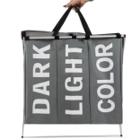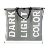 Ce panier à linge spacieux d’une capacité d’environ 130 l offre trois compartiments séparés pour les vêtements foncés, clairs et colorés. L’intérieur imperméable protège le tissu extérieur de l’humidité et des salissures, tandis que le cadre en aluminium stable maintient la forme et facilite la manipulation. Grâce au couvercle avec fermeture velcro, les odeurs indésirables restent à l’intérieur.