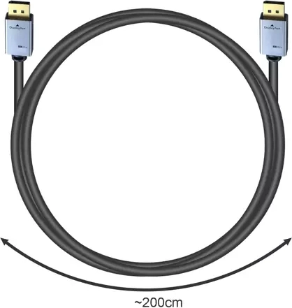 Entièrement compatible avec tous les appareils équipés de DisplayPort, tels que TV, PC, projecteurs, etc. La longueur de 200 cm est idéale pour connecter des appareils éloignés.