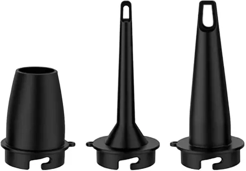 L'emballage contient trois embouts différents, permettant un usage universel de la pompe pour tous les types de gonflage.