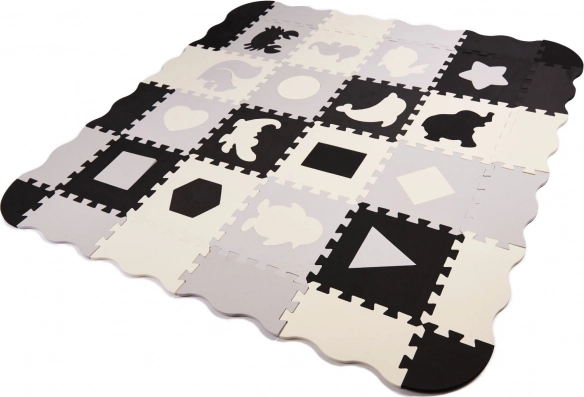 Ce grand tapis puzzle en mousse avec des éléments amovibles aux couleurs contrastées est idéal pour les jeunes enfants qui découvrent le monde des formes et des couleurs.