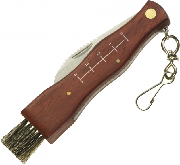Pratique, couteau à champignons à lame pliante et manche en bois, complété par une brosse intégrée pour nettoyer les champignons et un mousqueton d’attache. Grâce à ses dimensions compactes, vous pouvez l’avoir toujours à portée de main et le porter en toute sécurité dans la poche.