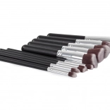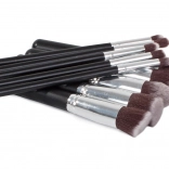 Les pinceaux possèdent une construction solide, des viroles argentées métalliques et des manches ergonomiques en bois laqué. Les fibres synthétiques sont résistantes, faciles à maintenir propres et fonctionnent parfaitement avec des produits liquides, crémeux ou poudreux, y compris la cosmétique minérale.