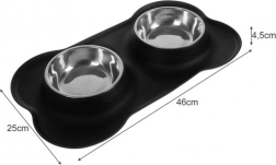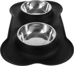 Priuštite svom ljubimcu udobno i čisto hranjenje. Dvije inox zdjelice zapremnine 2 × 450 ml umetnute su u fleksibilnu silikonsku podlogu koja hvata prolivenu vodu i prosutu hranu. Podloga u obliku kosti ima povišen rub i protukliznu obradu, pa ostaje na mjestu i pri entuzijastičnom gostovanju.
