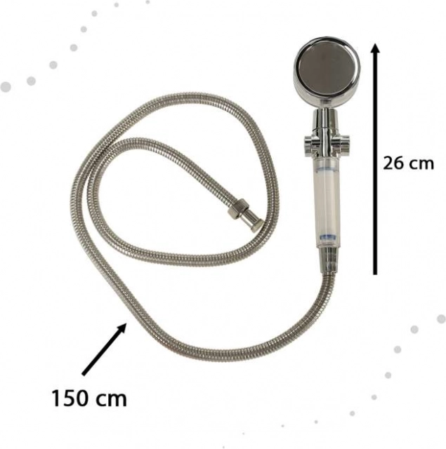 Elegantni srebrni dizajn savršeno se uklapa u bilo koji interijer kupaonice i lako se čisti zahvaljujući konstrukciji koja se brzo rastavlja i sastavlja. Glavne prednosti ovog proizvoda su štednja vode, poboljšani tlak vode te mogućnost trenutnog zaustavljanja protoka bez potrebe za manipulacijom s slavinom.