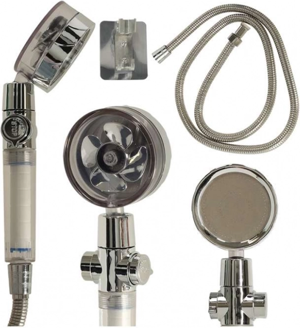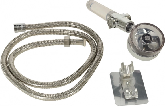 Bez obzira imate li kadu ili tuš, ova tuš glava je neophodan dodatak vašoj kupaonici. Ugrađena turbina i brojni mali otvori osiguravaju izvrsnu kontrolu nad tlakom vode i štede vodu i vaš novac. Zahvaljujući bočnoj regulaciji protoka vode, možete lako podesiti tok prema svojim potrebama. Set također uključuje tuš crijevo i držač za jednostavno postavljanje na zid. Duljina crijeva omogućuje praktično korištenje, bilo pri osobnoj higijeni ili čišćenju tuša.