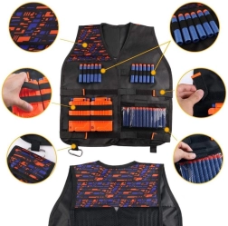 5. Sadržaj seta: Set sadrži taktički prsluk, zaštitne naočale, 30 strelica, maramu s printom za lice, remen za metke za nošenje na zapešću i dodatni spremnik za metke.
