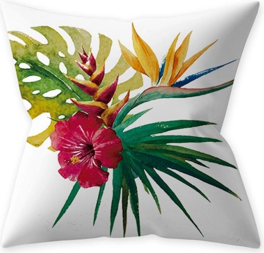 Šareni cvjetovi i lišće unose energiju i stvaraju upečatljivo središte na sofi ili krevetu.