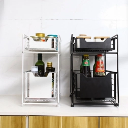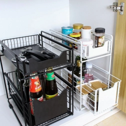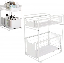 Multifunkcionalni, mobilni, dvokatni organizator savršeno će vam omogućiti upravljanje slobodnim prostorom u vašem domu. Zahvaljujući jednostavnom dizajnu, proizvod je univerzalan i praktičan. Multifunkcionalni ormar savršeno se istakne u kuhinji ili u smočnici kao dodatni prostor za spremanje posuda s hranom, začina, staklenki ili sredstava za čišćenje. S dvjema košarama postižete velike mogućnosti skladištenja. Kuhinjski organizator je opremljen vodilicama koje olakšavaju pristup sadržaju. Dodatna prednost organizatoraje njegov elegantni dizajn koji će sigurno pronaći put do svake kuhinje. Proizvod je izrađen od nehrđajućeg čelika, što jamči njegovu dugovječnost.