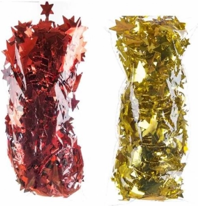 Božićna girlanda sa zvjezdicama ima u sebi žicu koja zadržava oblik, tako da možete stvoriti božićni ukras bilo kojeg oblika prema vlastitoj mašti. Prikladna je i za ukrašavanje božićnog drvca. Božićni ukrasi stvaraju ugodnu blagdansku atmosferu mira i sklada. Zvjezdastu girlandu možete odabrati u zlatnoj, srebrnoj i crvenoj boji.