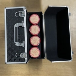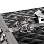 Kombinacija crnog i srebrnog metala s geometrijskim uzorcima daje kovčegu moderan izgled i istodobno osigurava njegovu izdržljivost.